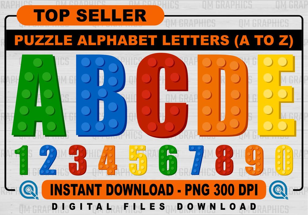 PUZZLE Alphabet Letter pack, A to Z letters, Puzzles, Instant Download, Digital Wallpaper, Scrapbook Digital Paper, PNG